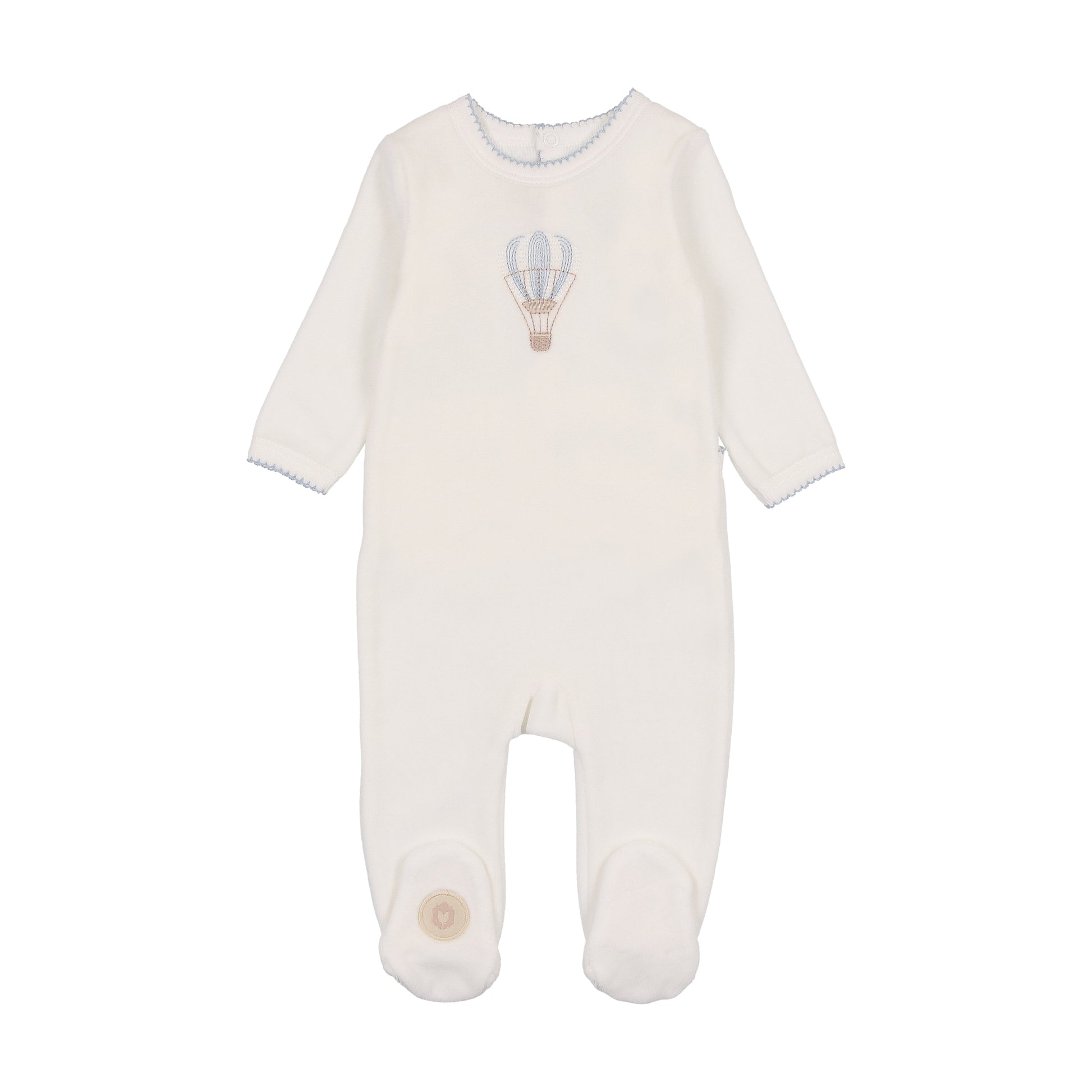 Mon Tresor Velour Embroidered Balloon Footie - Ivory