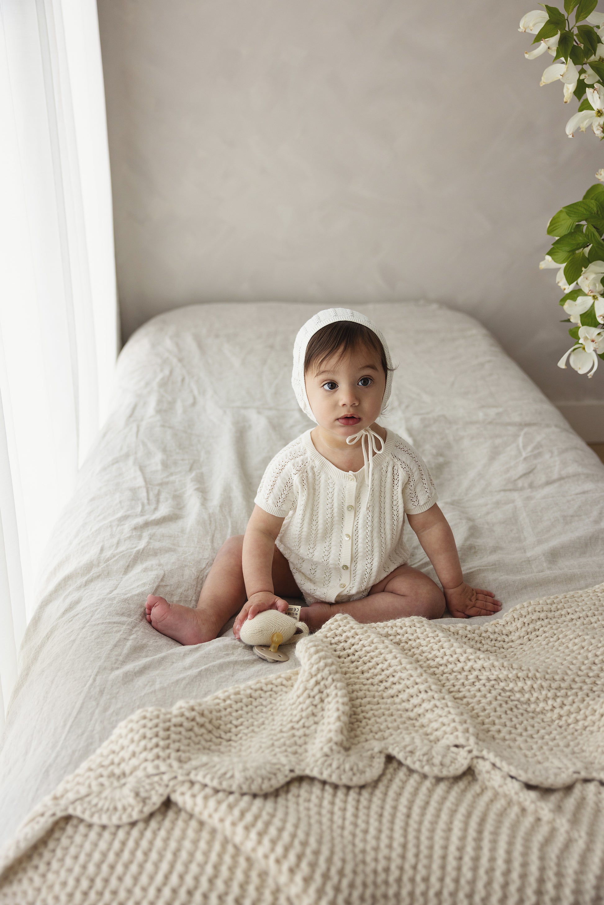 Lilette Crochet Knit Boy's Romper-Cream