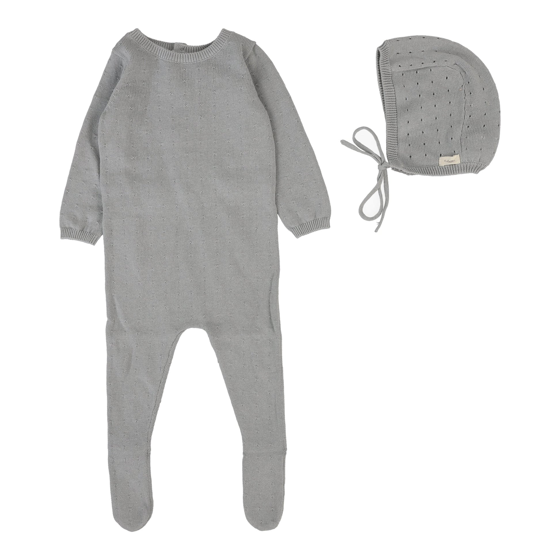 Lilette Dotty Knit Footie+Hat-Light Blue