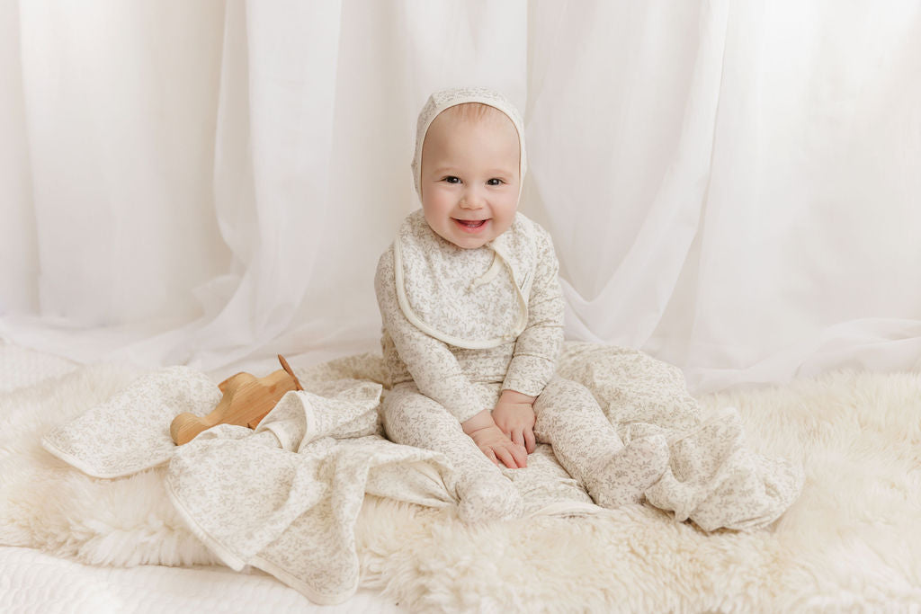 Ely's and Co Modal French Terry Collection Footie+Bonnet - Ivory/Sage