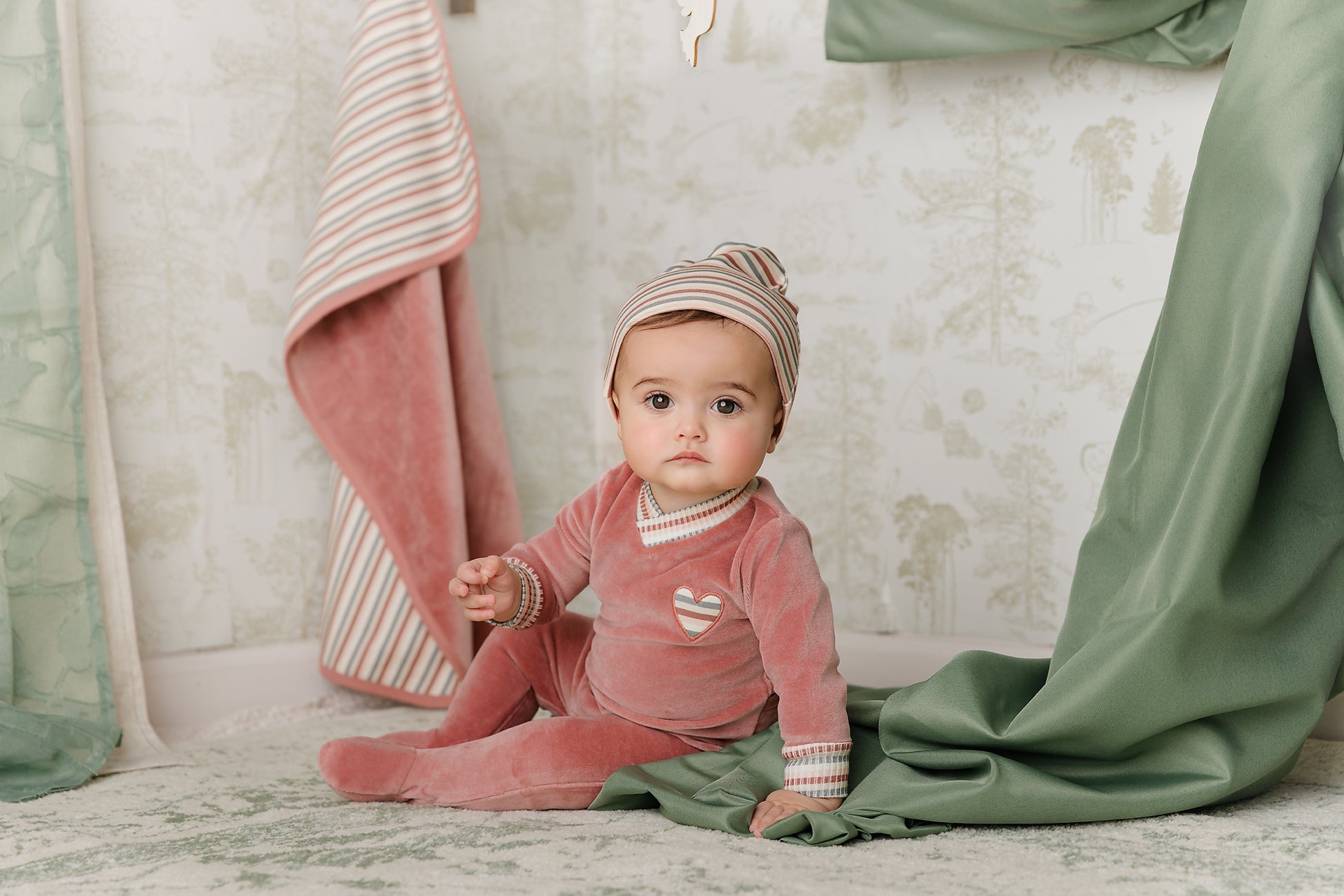 Mon Tresor Striped Heart Footie- Blush