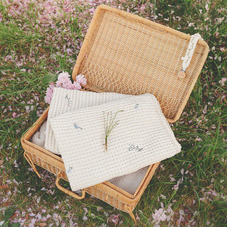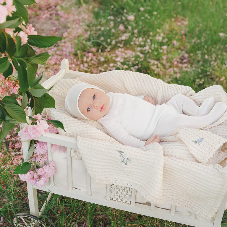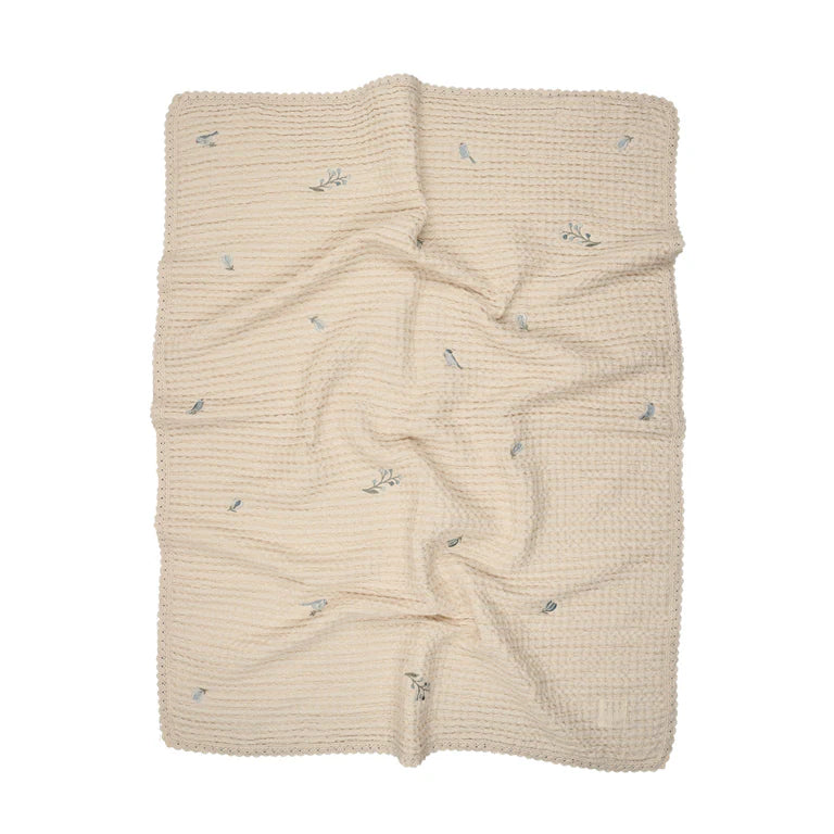 The Floral Birds Embroidered Waffle Blanket surrounds your little one in soft, breathable comfort while adding a touch of whimsical charm. Crafted from gentle waffle-textured fabric, it feels cozy against delicate newborn skin and provides lightweight warmth for everyday use. Delicate floral and bird embroidery adds timeless elegance and a playful, decorative detail that makes this blanket perfect for naps, stroller rides, or nursery décor. Soft, stylish, and thoughtfully designed, the Floral Birds Embroidered Waffle Blanket is ideal for daily use or as a cherished gift to welcome a new baby.